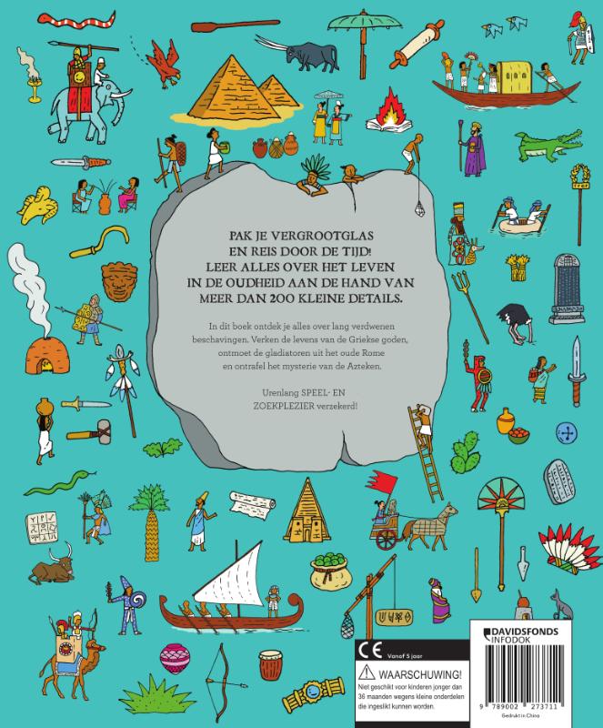 Pak je vergrootglas en reis door de tijd! Leer alles over het leven in de Oudheid aan de hand van meer dan 200 kleine details. In dit boek ontdek je alles over lang verdwenen beschavingen. Verken de levens van de Griekse goden, ontmoet de gladiatoren uit het oude Rome en ontrafel het mysterie van de Azteken. Urenlang SPEEL- EN ZOEKPLEZIER verzekerd!