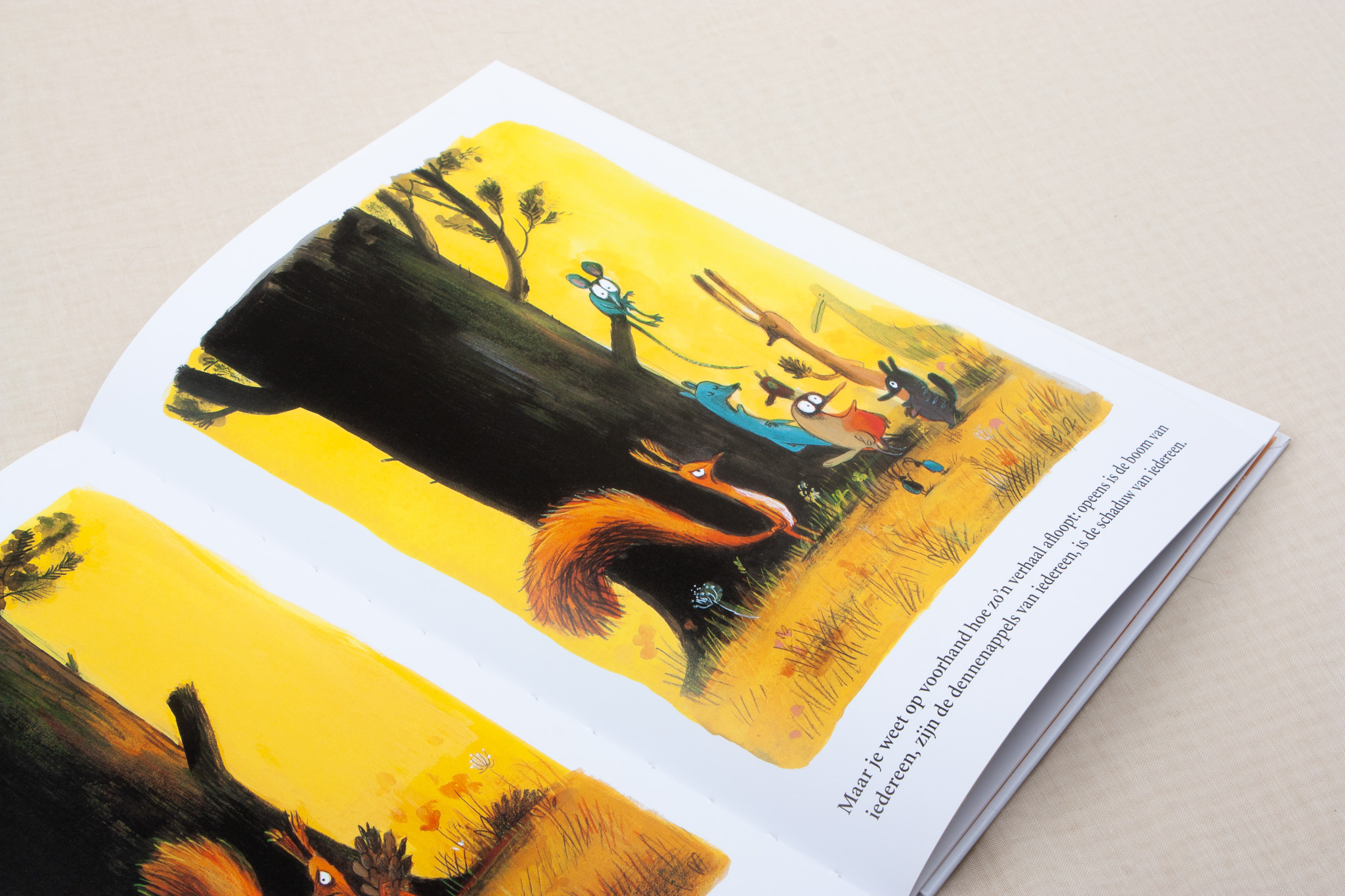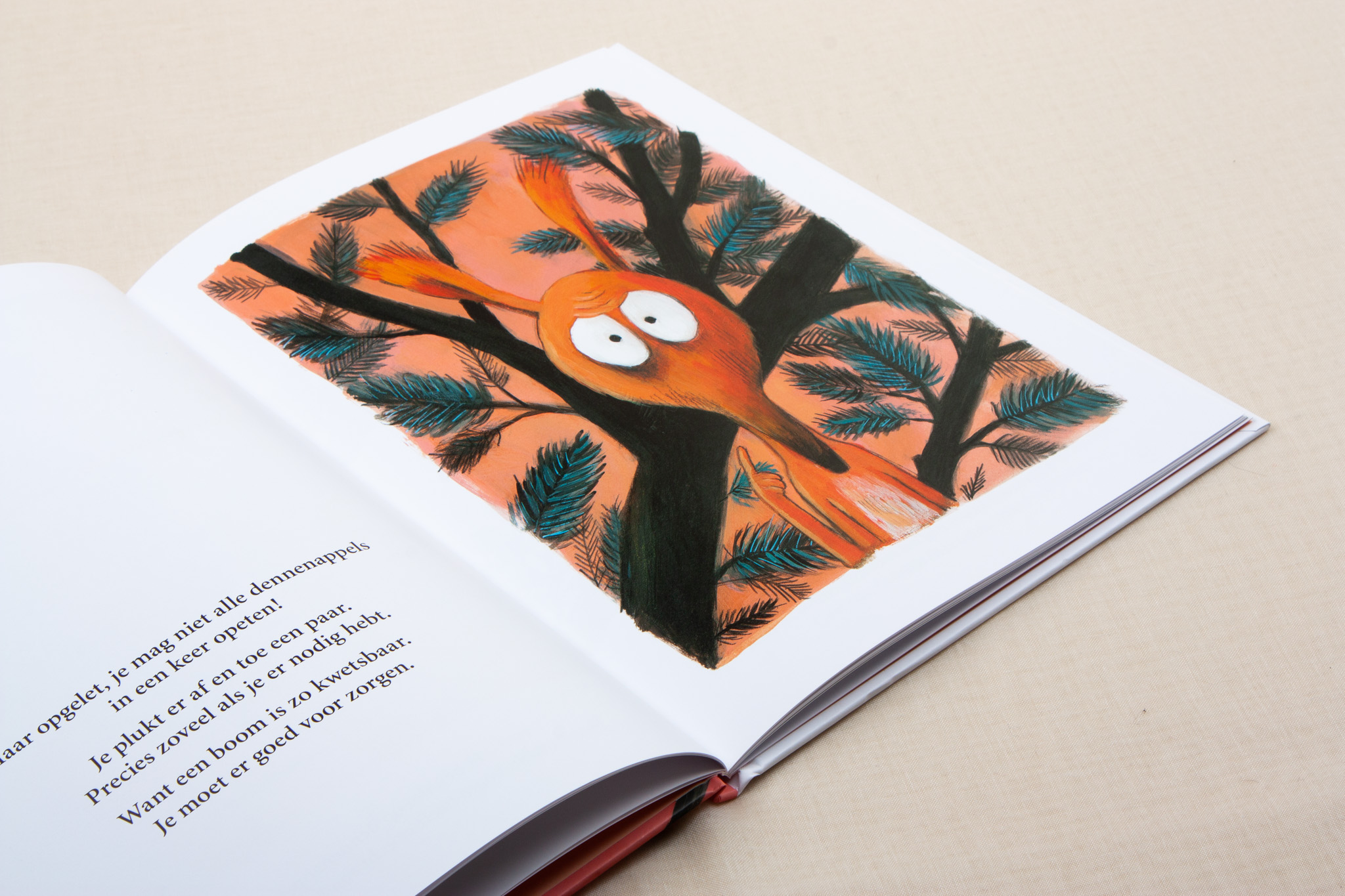 - Tweede boek na het succesvolle ‘Dit is MIJN boom’ (meteen herdrukt) van de meesterlijke Olivier Tallec. - Groeiende hebzucht brengt de eekhoorn zelf in gevaar, en dat komt speels in beeld door herhaling en droge humor. Eekhoorn weet dat hij goed moet zorgen voor zijn boom. Af en toe eet hij wel eens een dennenappel op. En dan nog een. En dan nog een … Bomen zijn heel kwetsbaar, je moet er goed voor zorgen. Eekhoorn praat veel tegen zijn boom. Soms geeft de boom hem een van zijn dennenappels. Niet te veel, want je moet het evenwicht bewaren. Eentje is misschien wel wat weinig voor Eekhoorn. Als er op een dag geen dennenappels meer zijn, dan heeft de boom ook nog naalden. En takken. En wortels …