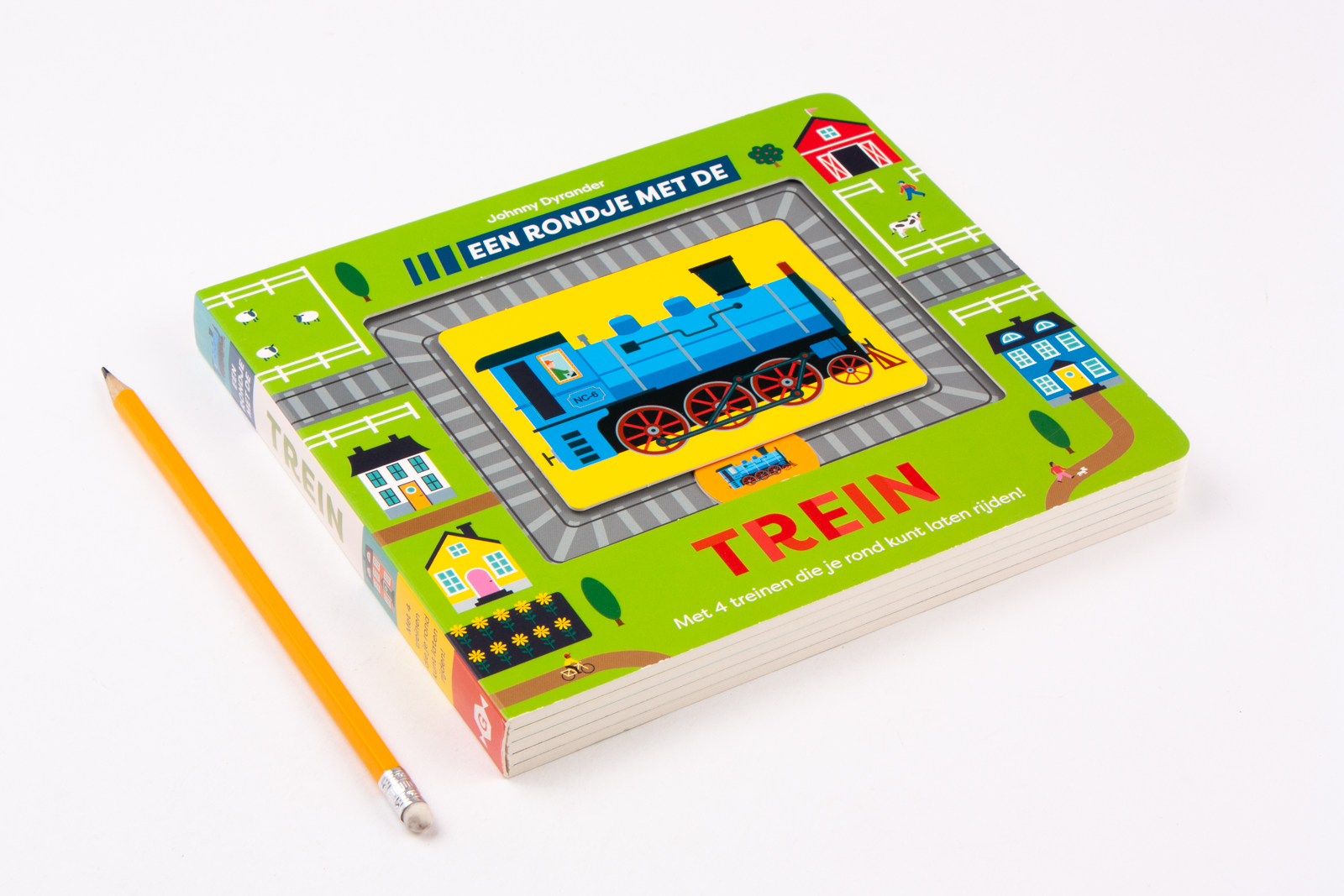 Bekijk grote treinen van dichtbij in 'Een rondje met de trein', een flink kartonboek met bewegende schuifjes om voertuigen heen en weer te laten rijden. Voor veel kleuters is er maar weinig zo fascinerend als een langsrazende hogesnelheidstrein of een luidruchtige goederentrein waar geen eind aan lijkt te komen. In 'Een rondje met de trein' kunnen ze vier treinen zelf van A naar B laten rijden over het spoor, met de eenvoudig te bewegen schuifjes die ingebed zijn in elke spread. Vol toegankelijke interessante weetjes over heel gewone én heel bijzondere treinen die je kunt tegenkomen, en met accurate illustraties.'Een rondje met de trein' is een superstoer deel in een reeks vol kleurrijke en realistisch afgebeelde voertuigen. Lees ook alles over bouwvoertuigen en verschillende soorten auto's in 'Een rondje over de bouwplaats' en 'Een rondje met de auto'. En neem een kijkje in de wereld van reusachtige trucks in 'Een rondje met de vrachtwagen'. De dikke kartonboeken hebben allemaal hun eigen illustraties van coole voertuigen om rond te laten rijden op elke rechterpagina.