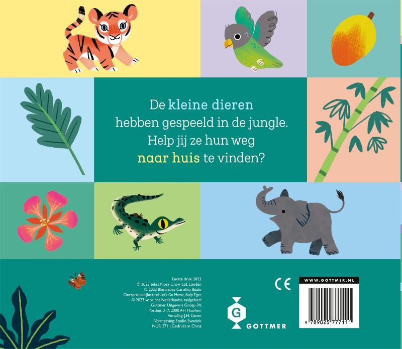 Ga op ontdekkingsreis door de jungle en help vier babydieren om hun huis terug te vinden in 'Kom je thuis, kleine tijger?'. Peuters kunnen zelf met de schuifjes langs vier unieke paden wandelen om zo het huis van de babydieren terug te vinden. Een kleine tijger, olifant, papegaai en krokodil hebben hulp nodig. Goed voor de ontwikkeling van de hand-oogcoördinatie en de fijne motoriek, maar vooral heel erg leuk om mee te spelen. Met de gemakkelijk te bewegen schuifjes en lieve illustraties gaan peuters op avontuur om de kleine dieren te helpen en spelenderwijs nieuwe woordjes te leren.