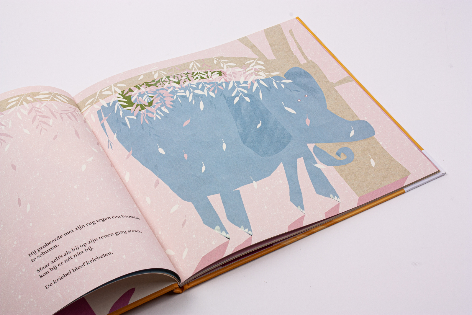 Er liep een olifant door het bos. Zo’n hele grote grijze. Een beetje lomp, met vier poten, twee oren en een lange slurf zoals echte olifanten hebben. Maar deze olifant was toch een klein beetje anders… Wat als je als olifant te horen krijgt dat er opeens een krokodil op je rug zit? Olifant heeft Kriebel is een verrassend boek over een olifant die kriebel heeft. De schrijfstijl is origineel en zeer toegankelijk voor elke lezer. De humoristische en onverwachte wendingen zorgen in eerste instantie voor veel leesplezier voor jong en oud, maar kunnen je ook aan het denken zetten. Wat kan er allemaal kriebelen? Wat zou jij doen als je kriebel hebt en je kan er net niet bij? Schaam jij je weleens voor iets? Hoe voelt het om een last op je rug te moeten dragen? De prachtige illustraties van Barbara de Wolf verrijken het avontuur en creëren een wereld waarin veel meer te zien en te ontdekken valt dan je in eerste instantie denkt. Het boek is daarom ook heerlijk om keer op keer opnieuw te lezen. Olifant heeft Kriebel is een boek voor iedereen die weleens kriebel heeft gehad, niet wist waar het vandaan kwam en waar je net niet bij kon.
