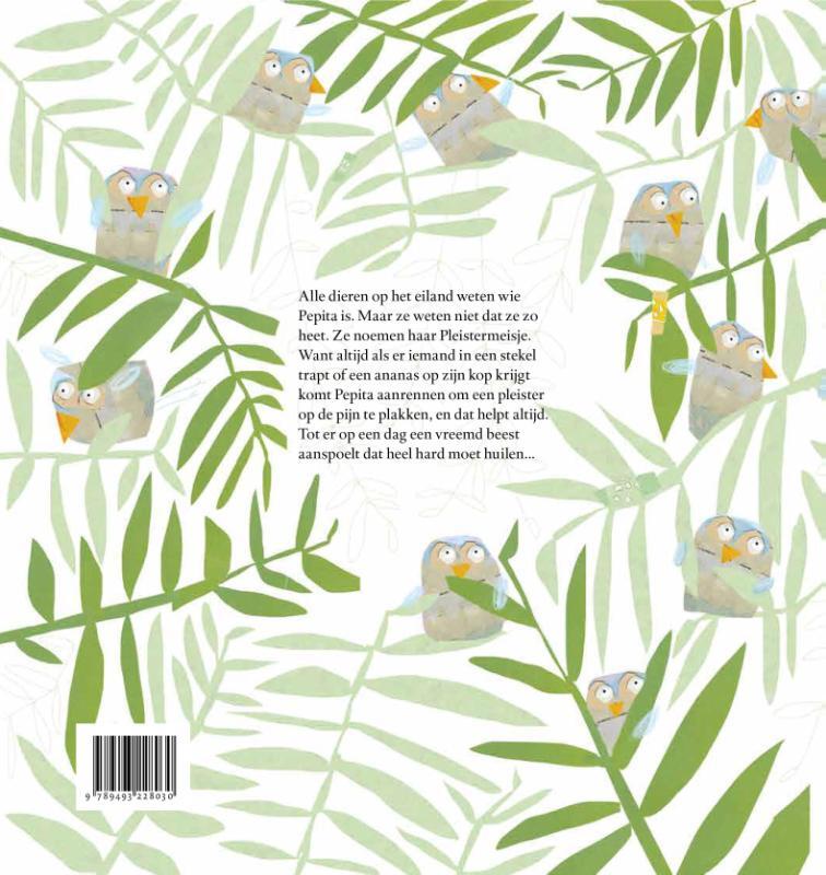 Alle dieren op het eiland weten wie Pepita is. Maar ze weten niet dat ze zo heet. Ze noemen haar Pleistermeisje. Want altijd als er iemand in een stekel trapt of een ananas op zijn kop krijgt komt Pepita aanrennen om een pleister op de pijn te plakken, en dat helpt altijd. Tot er op een dag een ... Meer