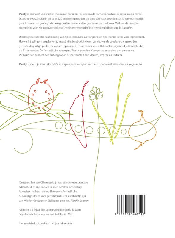 Plenty is een feest van smaken, kleuren en texturen. De succesvolle Londense traiteur en restaurateur Yotam Ottolenghi verzamelde in dit boek 120 originele gerechten, die stuk voor stuk bewijzen dat je voor een heerlijk gerecht meer dan genoeg hebt aan groenten, peulvruchten, granen en paddenstoelen.Met Plenty introduceerde Ottolenghi een geheel nieuwe en spannende keuken, met tot dan toe relatief onbekende ingrediënten. Inmiddels zijn er ruim 150.000 exemplaren van het boek verkocht en is Ottolenghi een begrip geworden.