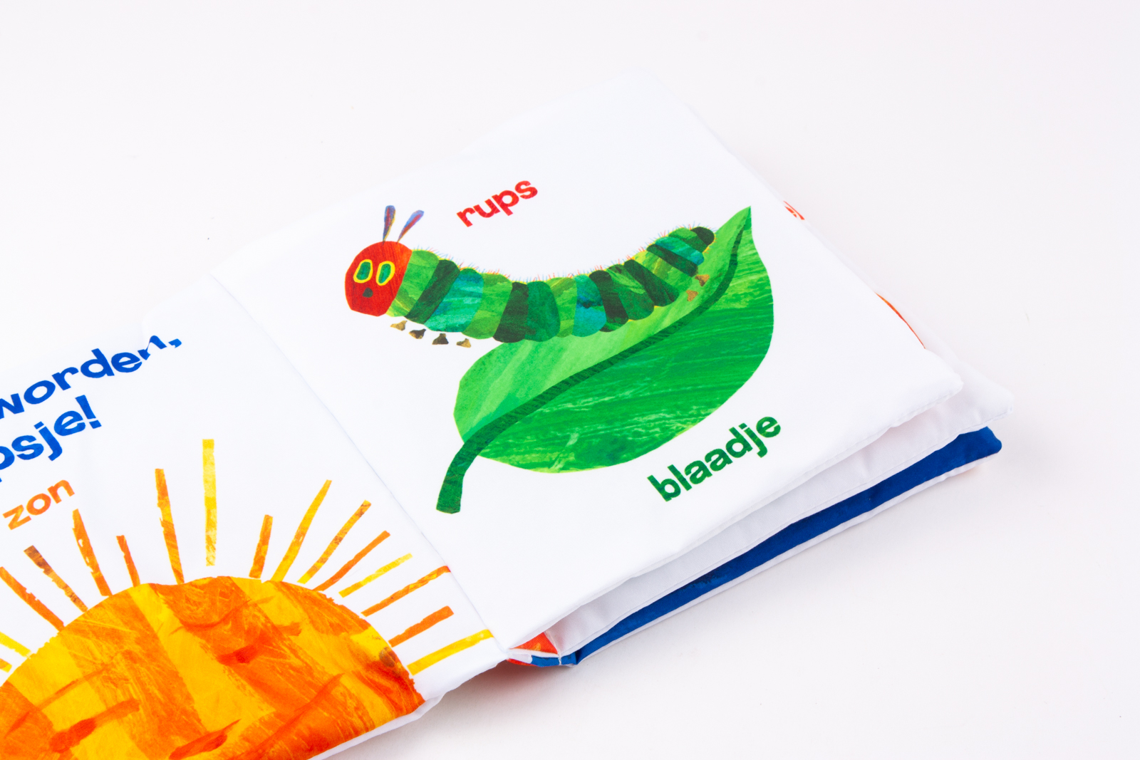Met 'Rupsje Nooitgenoeg - stoffen boekje' kunnen baby's vanaf 6 maanden al genieten van het klassieke Rupsje Nooitgenoeg-verhaal in vereenvoudigde vorm, maar met net zoveel mooie kleuren, vormen en de geliefde illustraties. Als je op zoek bent naar een leuke en interactieve manier om je baby te helpen bij het leren en ontwikkelen van de fijne motoriek, dan is een stoffen boek voor baby's een uitstekende keuze. Het zachte en veilige boekje is perfect voor grijpgrage babyhandjes: ze zullen het niet snel los willen laten. Het babyboekje is verpakt in een mooie cadeaudoos, kortom: het perfecte kraamcadeau!Rupsje Nooitgenoeg is het bekendste en meest geliefde karakter van schrijver en tekenaar Eric Carle. Hoewel het gelijknamige, iconische prentenboek al meer dan 50 jaar geleden verscheen, staat het nog altijd bij heel veel mensen in de boekenkast. En dat is niet verwonderlijk: de heldere collage-illustraties zijn samen met het vrolijke verhaal nog steeds een feest om te lezen.